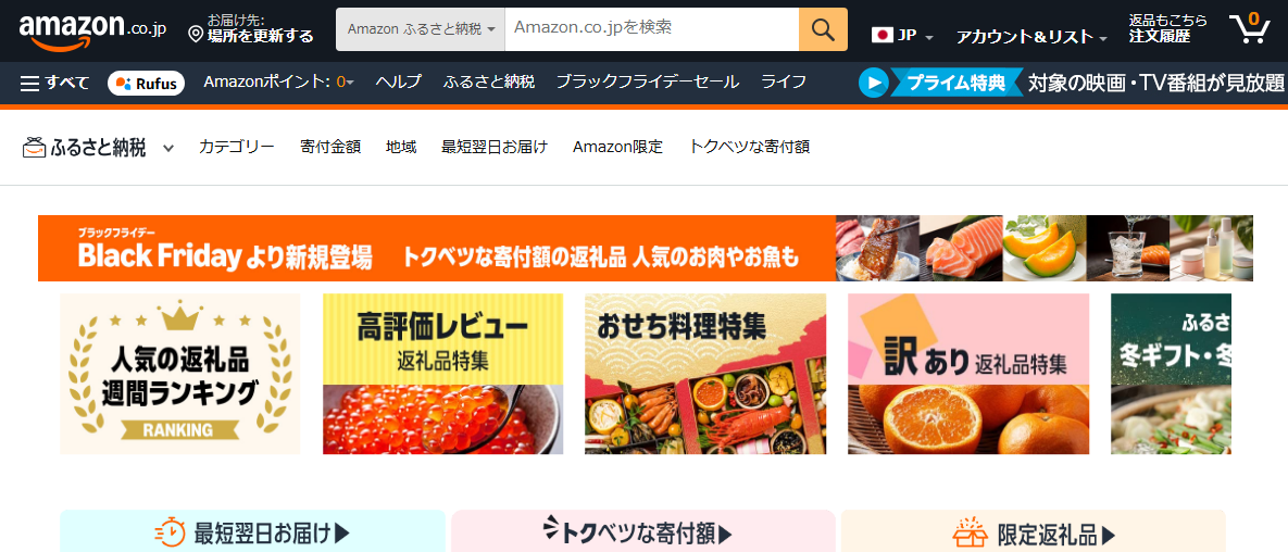 顧客満足度: 2024年12月にサービスを開始した後発サイトですが、Amazonの物流ネットワークを活用した高品質なサービスを提供しています。779点の限定返礼品も用意されています。