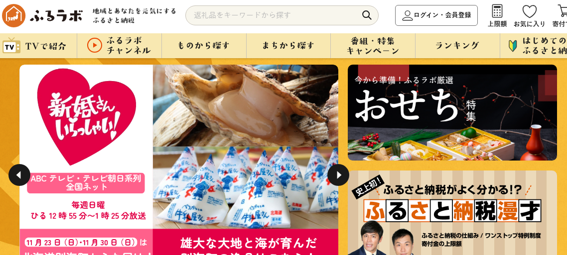 | 13位 | ふるラボ | 1,500 | - | テレビ局運営ならではの動画コンテンツや番組コラボ品が豊富。家電の返礼品が充実。 |