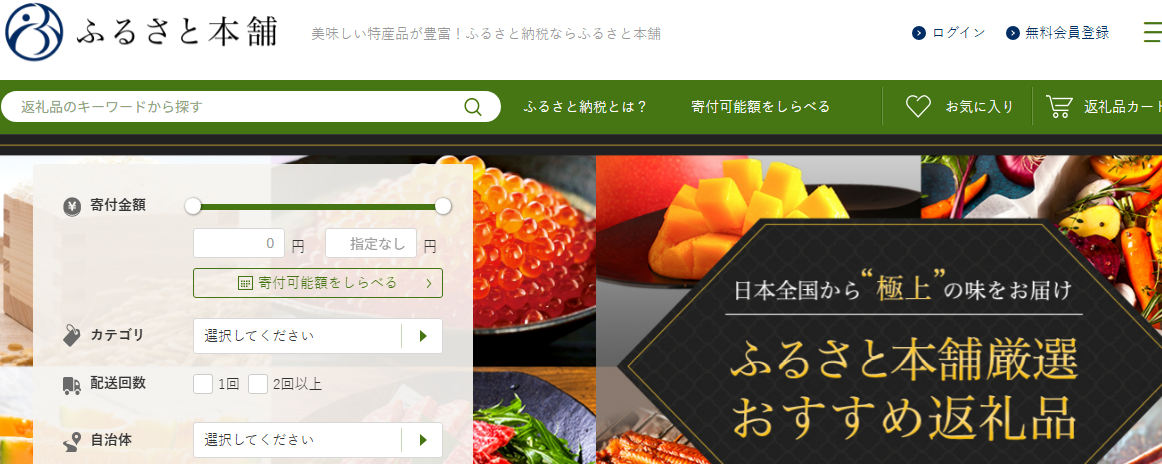 顧客満足度: オリコン顧客満足度調査(2024年)では総合満足度1位を獲得しています。ANAホールディングスが運営し、旅行関連の返礼品が充実しており、ANA限定の返礼品や特集が豊富です。掲載自治体数は1,000以上と豊富です。