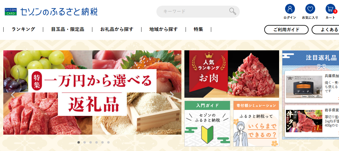 | 8位 | セゾンのふるさと納税 | 1,685 | - | 永久不滅ポイントを寄附に使える。日用品や旅行・体験の返礼品が非常に豊富。 |